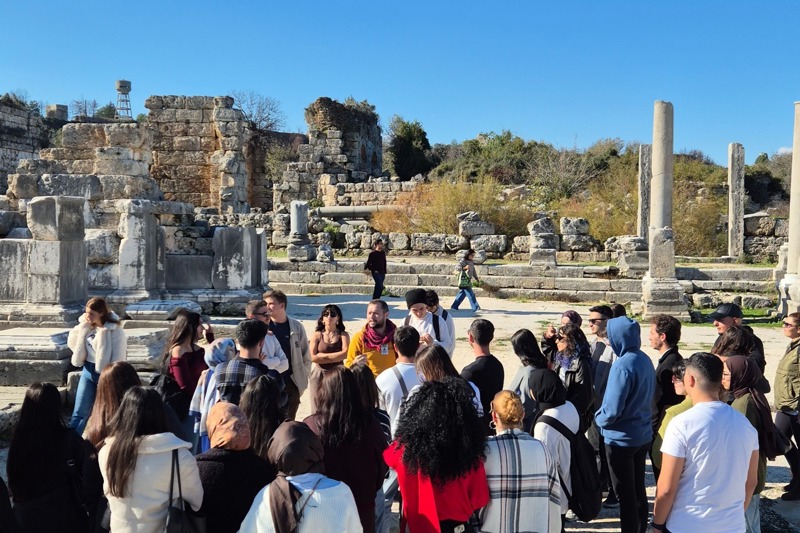 Bu yoğun ve kültür dolu programda bize yine Meslek Yüksekokulumuzdan hocamız, Profesyonel Turist Rehberi & Dr. Emrullah Cansu eşlik etti. Hocamızın akademik birikimi ve sahadaki tecrübesiyle, Perge’nin mermer sütunlu caddelerinde yürürken Roma döneminin şehir planlamasına hayran kaldık. Aspendos Tiyatrosu’nun o meşhur akustiğinde sanatın gücünü hissettik ve Side’de Apollon & Athena Tapınaklarının gölgesinde antik liman ticaretinin hikayelerini dinledik. 🗣️🏺