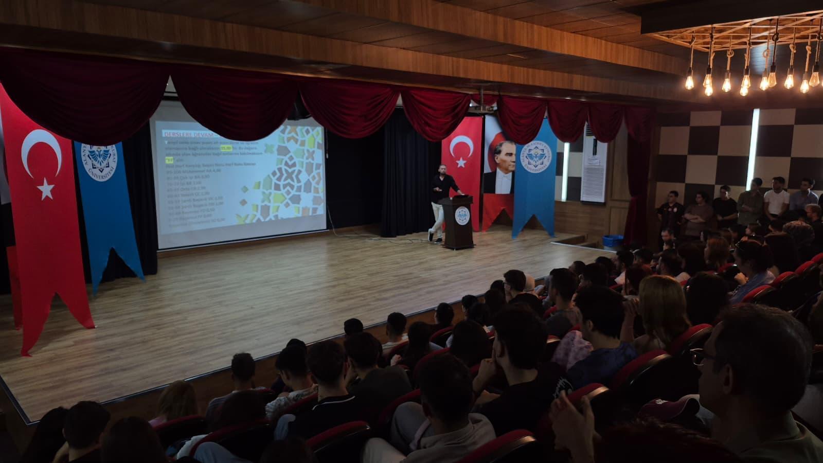 2025-2026 Eğitim-Öğretim yılında Meslek Yüksekokulumuza yeni kayıt yaptıran öğrencilerimize "Üniversite Tanıtım ve Bilgilendirme" konulu oryantasyon eğitimi Meslek Yüksekokulumuzun öğretim elemanlarından Öğr. Gör. Batıkan Yunus Can GÜLŞEN'in sunumuyla gerçekleştirildi. Eğitime Meslek Yüksekokulumuza yeni kayıt yaptıran öğrencilerimizin dışında akademik ve idari personellerimizde katıldı.